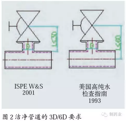 2001年ISPE水和純蒸汽基準(zhǔn)指南的“從主管外壁開始測到支管盲端或閥門密封點(diǎn)的長度L≤3倍的支管直徑D(3D)”;