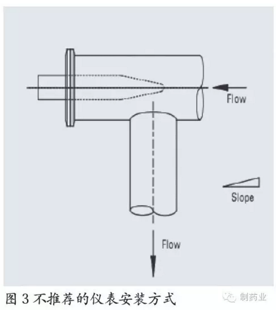 同樣,儀表在安裝的過程中也應(yīng)考慮系統(tǒng)的自排凈功能,下圖為推薦和不推薦的儀表安裝方式。