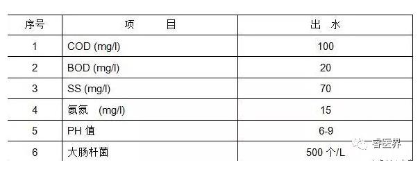 本污水處理工程按環(huán)境保護(hù)局管理規(guī)定和實(shí)際可能,其污水處理后排放指標(biāo)執(zhí)行國(guó)家《醫(yī)療機(jī)構(gòu)污水排放標(biāo)準(zhǔn)》(GB18466-2005)排放標(biāo)準(zhǔn)的規(guī)定。
